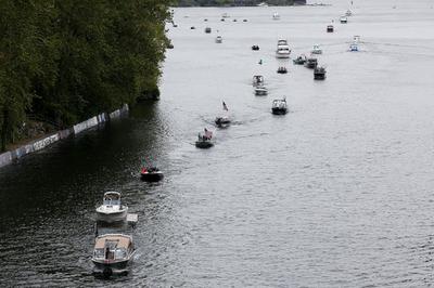 Протест против запрета на рыболовство, введенного в штате Вашингтон из-за пандемии, в районе Монтлейк, Сиэтл, США.