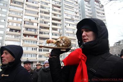 Кульминацией встречи стали танцы с бубнами, ой, простите, с курами. Группа молодых людей с красными бантами на шее вынесла на подносе курицу и ананас. Весь этот перфоманс сопровождался декламацией стихов Маяковского «Ешь ананасы, рябчиков жуй, день твой последний приходит, буржуй». Эти проникновенные строчки провокаторы посвятили Валерию Рашкину, обвиняя его в нарушении коммунистической идеологии и буржуйском образе жизни.