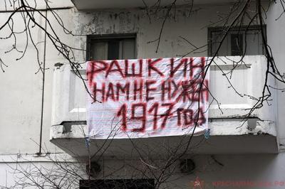 Нормальные люди на простынях спят, а провокаторы их марают. Напротив детской площадки, где проходила встреча, на одном из балконов появился нелепый плакат из подручных материалов с лозунгом «Рашкин, нам не нужен 1917 год». И на этом цирк не закончился. Заглушая выступление депутата, провокаторы кричали в мегафон, возбуждая толпу и пытаясь переманить жителей на свою сторону.