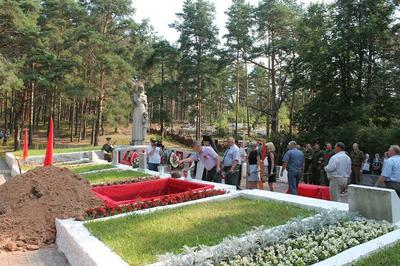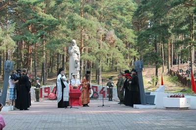 У братского захоронения советских воинов свое приветствие передал Почетный гражданин г. Печоры настоятель Псково-Печерского монастыря архимандрит Тихон. Нужно напомнить, что на это звание его представляли печорские коммунисты. В 70-ю годовщину освобождения г. Печоры здесь проходило захоронение останков советских воинов, имена которых остались неизвестными. На гроб летели щепотки земли от потомков, которые жизнью обязаны героям войны. Тихо шумели ветви сосен, озаренных солнцем.
