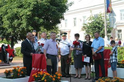 У стелы были открыты памятные доски печорским подпольщикам и командиру 291-й стрелковой дивизии.