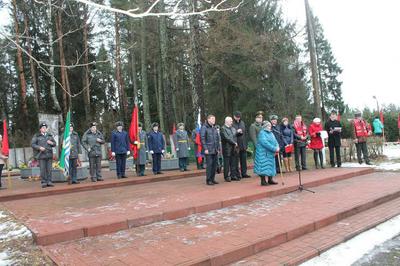Александр Рогов кратко обозначил победный путь Советской армии в боях за п. Плюсса, борьбу партизан в плюсских лесах, которые с начала оккупации с лета 1941 года пустили под откос десятки воинских эшелонов, громили комендатуры и полицейские участки. «Низкий поклон всем участникам героической борьбы с немецко-фашистскими захватчиками. Советский воин Победы стал символом свободы и независимости. 27 января делегация псковских коммунистов участвовала в мероприятиях, посвященных прорыву блокады Ленинграда. Нас встретил город-герой, расцвеченный государственными флагами и копией Знамени Победы. Сегодня с чувством гордости за псковскую землю – родину Знамени Победы, родившегося в сражениях за станцию Идрица в Себежском районе, – вручаю копию Знамени Победы Главе Плюсского района Анатолию Соловьеву», - сказал Александр Рогов.