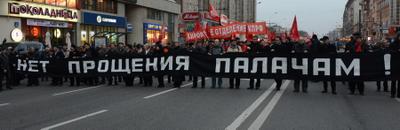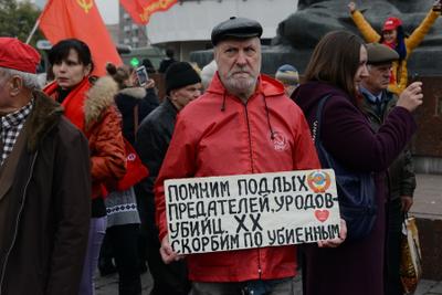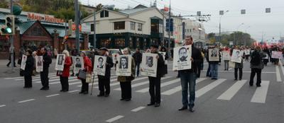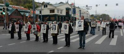 Я принял вчера участие в траурном шествии, посвященном событиям 3-4 октября 1993 г. Не мог не принять, понимая, какая трагедия тогда случилась. В числе других мне доверили нести ключевой для акции, да и для всех этих дней лозунг: "Нет прощения палачам!" Народу было немало — многие тысячи. Так много людей давно не собиралось, но тут был, конечно, особый повод. По всему пути следования стояли бойцы дивизии Дзержинского - той самой, что блокировала Дом Советов 20 лет назад. Ребята как будто те же самые, как на видеохронике 1993 г., с простыми и ничего не понимающими лицами - только форма другая. И в отличие от своих сверстников