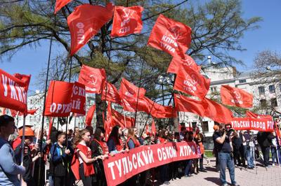 Колонна демонстрантов прошла по главной магистрали города - проспекту Ленина. Ее возглавили члены ЦК КПРФ Олег Лебедев и Татьяна Косарева, члены Тульского обкома КПРФ, ветераны партии, рабочие, молодые коммунисты, а также юные туляки.