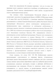 Однако статья о реабилитации нацизма (354.1 УК) предусматривает ответственность за распространение заведомо ложных сведений о деятельности СССР в годы Второй мировой войны. Рашкин отметил, что в этом случае нужно провести экспертизу, так как оправдание деятельности Краснова «автоматически выставляет борьбу советского народа и правительства с ним и ему подобными неправильной, что в корне ложно». Он добавил, что в России есть запрет на оправдание терроризма, а Краснова казнили, в том числе, за террористическую деятельность против СССР.