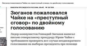 Председатель ЦК КПРФ Геннадий Зюганов направил обращение генеральному прокурору Юрию Чайке с требованием проверить все случаи неоднократного голосования на выборах президента при помощи системы «Мобильный избиратель»...