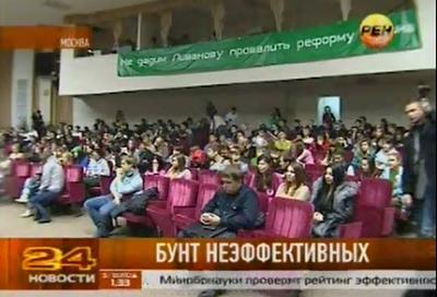 Телеканал РЕН ТВ рассказал об акции протеста студентов РГТЭУ против политики министра от "Единой России" Ливанова. В репортаже упоминается о встрече бастующих студентов с депутатами фракции КПРФ в Госдуме Василием Иконниковым и Казбеком Тайсаевым.