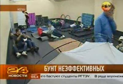 В: Около 400 московских студентов сегодня спали кое-как, защищая свое право доучиться там, куда они поступили. Такого в новейшей истории не было. Но в Российском государственном торгово-экономическом университете другого выхода не нашли и намерены не спать дальше. Ольга Роева о стачке московского студенчества, к которой в Минобразования отнеслись странно.