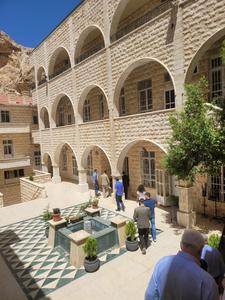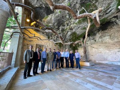 Кроме того, российский делегации удалось побывать в Маалюле. Это небольшой город с невероятной историей, живописными пейзажами и уникальным наследием, которое было истерзано боевиками в ходе Гражданской войны. На территории древнейшего поселения до сих пор говорят на языке Иисуса Христа – на арамейском, используя западный диалект. Дорога к Маалюле проходит через пустыню и высокие монументальные скалы. Здесь расположилась христианская святыня Сирии – пещера, где жила, а потом была погребена ученица апостола Павла Святая равноапостольная Фёкла. Сегодня здесь находится основная достопримечательность, ради которой в Маалюлю часто приезжают туристы, монастырь святой Фёклы. Согласно легенде, молодая девушка подверглась гонениям после того, как уверовала в религию Иисуса Христа. Сбежав от преследователей, Фёкла обратилась с молитвами к Всевышнему. И тогда свершилось чудо: гора раскололась надвое, образовав ущелье, в котором и спряталась молодая девушка. Под сводами небольшой пещеры Фёкла прожила долгие годы в вере и благоденствии.