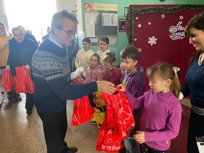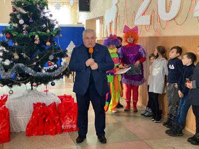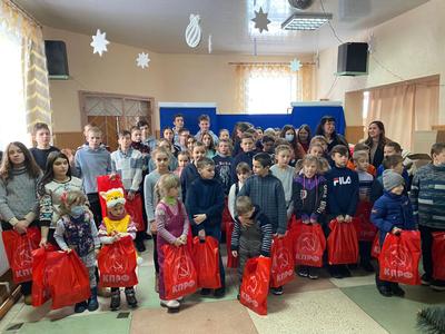 27 декабря российская делегация приехала в гости к ребятам в Александровскую и Луганскую школы Марьинского района, которые находятся фактически на линии фронта. По сей день на этих территориях происходят обстрелы – многие семьи уехали из Марьинки, но другие остались, стараясь выстраивать свой быт в таких непростых условиях. Ребята подготовили большую новогоднюю программу: ученики пели и танцевали, наряжались в новогодние костюмы и показывали занимательные сценки. По завершении мероприятия им вручили подарки от КПРФ. Дети, в свою очередь, тоже не остались в стороне и вручили подарки: памятные открытки с новогодними поздравлениями и сувениры, сделанные своими руками. «Наша сила в единстве. Я с большим удовольствием хочу передать вам поздравления от ваших сверстников из Якутии. Мы все ждём мира, спокойствия и стабильности на земле Донбасса. Мы все хотим, чтобы это зло наконец закончилось – добро должно торжествовать», – поздравил учеников Виктор Николаевич Губарев.