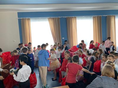 Делегация посмотрела вместе с ребятами интерактивное новогоднее представление, подготовленное актерским составом театра. По завершении мероприятия были подарены новогодние подарки от КПРФ – чудесные ранцы со сладостями.