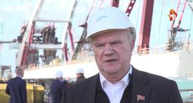 Лидер партии КПРФ Геннадий Зюганов понаблюдал за ходом строительства моста в Крым. По его мнению, работы идут полным ходом с опережением.