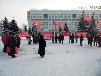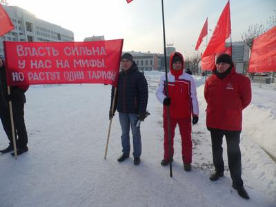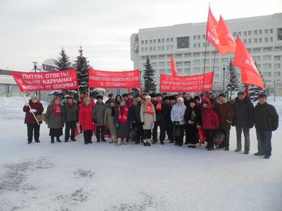 Невзирая на морозную погоду, митингующие подняли флаги КПРФ и развернули транспаранты с яркими и броскими лозунгами: «Работу! Зарплату! Уверенность в завтрашнем дне!», «Право на труд = право на жизнь!», «Путин, ответь! В чьих карманах прибыль от бензина?», «Отечественная промышленность – залог безопасности страны!», «Капиталисты нас достали! Приходи товарищ Сталин!», «Прогрессивный налог на роскошь – залог снижения цен и тарифов!», «Наш курс – труд! Народовластие! Социализм!», «Цены и тарифы под контроль государства!», «Правительство министров-капиталистов в отставку!».