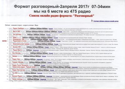 Радиогазета «Слово» на 6 месте в формате разговорный (2017 г.)