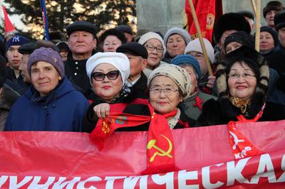 Коммунисты Бурятии торжественно отметили 100-летие Великой Октябрьской социалистической революции. Митинг-концерт прошёл на площади Революции, где собралось более 700 человек.