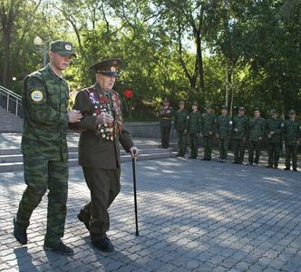 У памятника воинам Великой Отечественной горит вечный огонь, стоят в карауле солдаты. Звучат фронтовые песни. Ровно в 9.00. голос Юрия Левитана объявляет о начале войны.