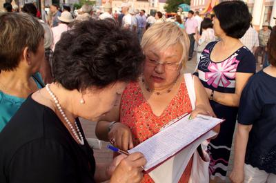 В завершение митинга слово попросила член Союза журналистов СССР, почётный работник телевидения и радио Лариса Суворова. Она выступила с обоснованием, почему жители Бурятии должны поддержать кандидатуру Мархаева, что ни в коем случае нельзя мириться и молчать о беззаконии власти.