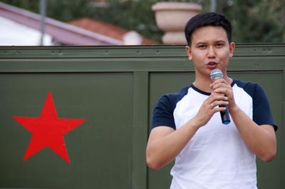 Во время выступления депутата Народного Хурала, секретаря комитета БРО КПРФ Баира Цыренова случился инцидент: на середину площади вдруг выскочил кандидат в Главы Бурятии известный шоумен Бато Багдаев с мегафоном в руке и стал кричать, что ему не дают слово.