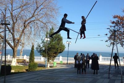 Перед началом мероприятия свое мастерство показали канатоходцы, воспитанники Эстетического центра «Радуга».