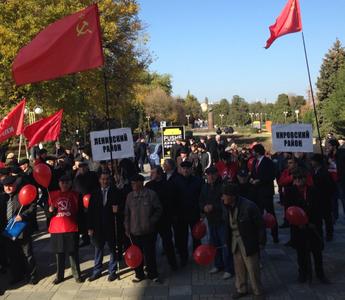Первый секретарь Дагестанского рескома КПРФМахмуд Махмудовв своем выступлении отметил, что 98-годовщину Октября мы уже встречаем не на центральной площади города Махачкалы. Мы отмечаем годовщину Великого Октября в противоречивое время. На официальных календарях России 7 ноября больше не красный день. И это не первая попытка отменить праздник революции. В годы Великой Отечественной его уже запрещали на оккупированной фашистами территории. Но Октябрь 17-го и Май 45-го остаются главными вехами в истории ХХ века. Эти события не будут забыты человечеством. Социалистическая альтернатива настойчиво стучится в дверь. И мы с оптимизмом встречаем праздник революции под красными знаменами. С нами опыт наших великих предков. С нами сила наших учителей – Маркса и Энгельса, Ленина и Сталина. С нами сила великих побед и грандиозных свершений. И мы смотрим в будущее с уверенностью и оптимизмом. Октябрь 17-го открыл перед народами страны право на мир, труд, свободу, равенство, братство. Узаконил право развития национальных культур всех народов Страны Советов. Под знаменем Октября наши отцы и деды возводили Магнитку и Днепрогэс. Защищали Москву и Сталинград. Брали Кенигсберг и Берлин. Осваивали Космос и Целину. Строили новые города и села. Растили и учили детей. Укрепляли и защищали нашу Советскую Родину.