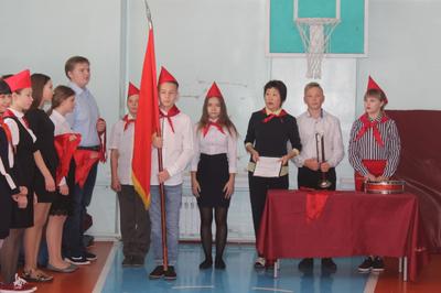 От гостей из Хакасского отделения КПРФ, депутата Верховного Совета Хакасии Романа Закорецкого звучат поздравления ребятам. Старшие пионеры и приглашенные повязывают галстуки. Всего 27 пятиклашек в Целинном отныне носят гордое звание – пионеры. Присматривать за младшими, учить, кто такие пионеры и чем они занимаются будет Арина Судницына, Председатель пионерской дружины.