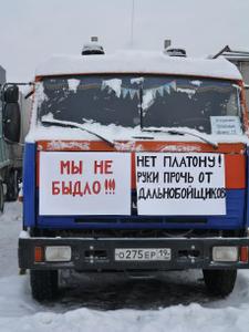 Пикет, организованный с помощью Абаканского горкома КПРФ, мы проводим на улице Итыгина в Абакане. Здесь традиционная "точка" дальнобоев. Начинаем акцию в час дня, народа очень много, все настроены по-боевому. Водители быстро растекаются вдоль оживленной дороги и разбирают сделанные нашими коммунистами плакаты. Лозунги выбирали жесткие, проезжающие машины одобрительно сигналят, причем в основном легковые машины. Видно, что симпатии абаканцев целиком на стороне перевозчиков. Неужели люди начали понимать, что только сообща мы можем отстоять свои права. На одном из плакатов на "КАМАЗах" написано "МЫ НЕ БЫДЛО!", на наш взгляд эту мысль надо заучивать с первого класса школы, потому что власти-то привыкли, что народ безмолвствует. Без шума и пыли получил в собственность систему сбора платы с дальнобойщиков - "Платон" Игорь Ротенберг, сын друга Путина и неприлично богатого человека Аркадия Ротенберга. Потому и назвали новый налог в честь этой замечательной семьи.