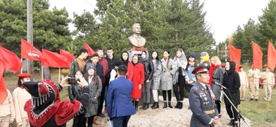 Люди с живыми цветами все шли и шли к памятнику и фотографировались. Очень трогательно — юнармейцы, кадеты, учащиеся школ, студенты педагогического училища... Почтить память Сталина пришел и выпускник Екюндюнской общеобразовательной школы Семен Кулебякин, который нынче в составе команды морской пехоты Военно-Морского Флота России стал чемпионом Международных армейских игр.