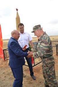 Почетное право открыть памятник-обелиск, посвященный воинам Великой Отечественной войны 1941-45 годов, было предоставлено ветерану Великой Отечественной войны – Сафонову Ивану Архиповичу и председателю Ассоциации поисковых отрядов «Калмыкия» - Кравчуку Игорю Степановичу.