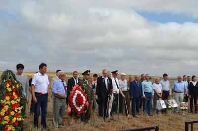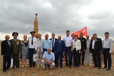 Перед открытием памятника-обелиска, выполненного в форме оружейного патрона, увенчанного красной звездой, собрались на митинг ветераны Великой Отечественной войны, представители КРО ООО «Дети войны», представители Ассоциации поисковых отрядов «Калмыкия», почетные гости из Астраханской области, приглашенные.