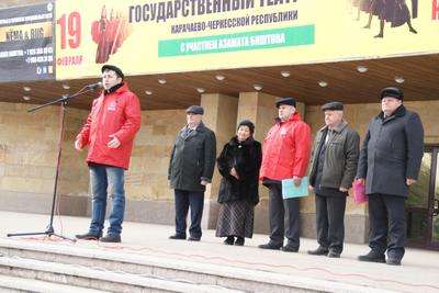 6 февраля 2016 года в Черкесске на Театральной площади республиканским комитетом КПРФ проведен митинг. Цель митинга – НЕ только участие во Всероссийской акции протеста против неэффективной государственной социально-экономической политики, проводимой в Российской Федерации. Главное - потребовать от властей России принять необходимые меры в связи с бедственным положением граждан из-за роста цен на товары первой необходимости, роста тарифов на услуги ЖКХ, роста безработицы, решения проблем наступившего кризиса за счет беднейшей част населения страны.