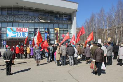 В завершении мероприятия коммунисты раздали митингующим газеты и пригласительные билеты на Торжественный вечер в ознаменование 70-летия Великой Победы.