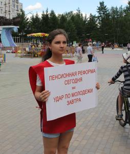 Сегодня, 28 июня, руководитель Коми отделения ЛКСМ РФ Валерия Михайлова вышла на одиночный пикет в центре Сыктывкара. Комсомолка держала в руках плакат "Пенсионная реформа сегодня = удар по молодежи завтра".