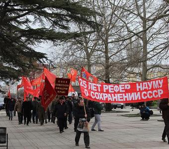 В четверг, 17 марта, в городе Симферополе коммунисты, члены Союза Советских офицеров, комсомольцы, жители и гости города вышли на площадь имени В. И. Ленина, чтобы провести торжественное мероприятие по случаю 25-й годовщины проведения референдума «О сохранении Союза Советских Социалистических Республик».