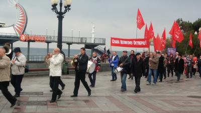 7 ноября 2015 г. Ялтинское городское отделение КПРФ вместе с жителями города провела митинг и демонстрацию в честь 98 годовщины Великой Октябрьской социалистической революции.