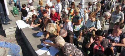 19 сентября на площади Советской перед зданием горсовета Алушты прошел митинг протеста против троекратного повышения тарифов на обслуживание жилого фонда.