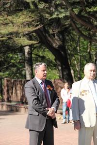 Здесь же состоялся митинг, который открыл первый секретарь Крымского рескома КПРФ Олег Андреевич Соломахин. Он, в частности, сказал: «Сегодня, 8 мая, мы собрались у могилы «Неизвестного солдата», чтобы отдать дань памяти всем героям Великой Отечественной войны. К сожалению, нынешняя власть хочет забрать у нас этот праздник. Прошёл «Бессмертный полк». И каждый участник этого шествия прошёл с фотографией только своих родителей, но нельзя нам брать с собой фотографии великих полководцев, которые воевали и которые победили в той страшной войне. Запрещается также идти в колонне «Бессмертного полка» со Знаменем Победы. Позор! Но они не запретят нам одного — помнить. Помнить о наших героях, о нашей Советской Армии, которая сражалась за то, чтобы мы с вами сегодня жили на Земле под мирным небом. Они не запретят нам помнить, что победа была одержана под руководством Коммунистической партии Советского Союза и Верховного главнокомандующего Иосифа Виссарионовича Сталина! Слава Советской Армии-победителю! Слава нашему генералиссимусу Иосифу Виссарионовичу Сталину. С праздником, товарищи, с Днем Великой Победы!».