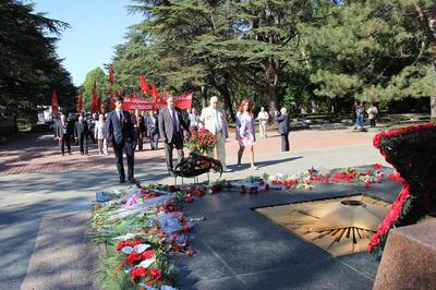 В Симферополе у могилы «Неизвестного солдата» в городском парке им. Ю. А. Гагарина состоялось шествие-митинг.