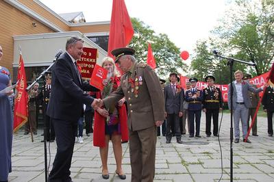 Олег Соломахин вручил Почетную грамоту ветерану партии Анатолию Ивановичу Сидько, которому в этот день исполнилось 80 лет.