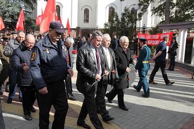 Коммунисты, комсомольцы, члены Союза Советских офицеров, жители и гости города возложили цветы к памятнику основателю Советской Армии Владимиру Ильичу Ленину. После чего праздничной колонной все участники мероприятий по центральным улицам Симферополя прошли к памятнику Танку-освободителю, который расположен в сквере Победы, где также были возложены цветы в память советским воинам-освободителям. Затем участники торжественных мероприятий возложили цветы к барельефу верховному главнокомандующему Иосифу Виссарионовичу Сталину. Продолжились торжества в актовом зале Крымского республиканского отделения КПРФ. Собравшихся горячо поздравил лидер крымских коммунистов, Первый секретарь Крымского республиканского отделения КПРФ Олег Андреевич Соломахин: "Я поздравляю всех ветеранов Великой Отечественной войны, всех бывших фронтовиков, всех тех, кто сражался и воевал за свободу и независимость нашей Родины, всех тех, кто защищал нашу страну от внешних врагов, берег спокойствие наших граждан. Я благодарен всем тем, кто не изменил присяге, данной раз и на всю жизнь. В то же время, не могу не сказать о нашей власти, которая вместо того, чтобы поздравить и поблагодарить вас, настоящих советских офицеров, чьи кители увешены орденами и медалями, многие из которых боевые, запретила проводить массовые мероприятия и шествия, приуроченные к этому празднику. Но мы прошли по центральным улицам Симферополя, потому что наш дух не сломить!", - отметил Олег Андреевич.