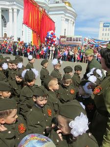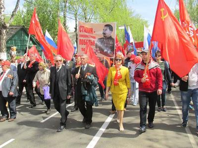 Наша колонна была призвана напомнить саранчанам о том, что именно советский народ, а не голубознаменная Единая Россия победили в этой Святой войне!!!