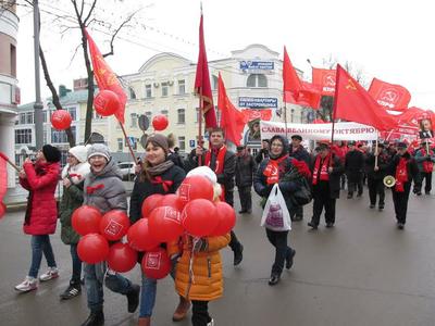 Затем празднично украшенная колонна демонстрантов, во главе с красочно украшенной машиной и всадницами в форме красноармейцев времен гражданской войны, прошла по Советской улице - центральной улице г.Саранска. В этой колонне слились воедино ветераны партии и молодёжь, активисты и беспартийные люди. Все они разные, но объединяло их в этот момент одно - понимание того, что идея социальной справедливости, равноправия и благополучия 7 ноября 1917 года, с выстрелом "Авроры", из несбыточной мечты начала превращаться в реальность, и что их святой долг отдать дань уважения этому событию и тем людям, которые пожертвовали для этого своими жизнями.