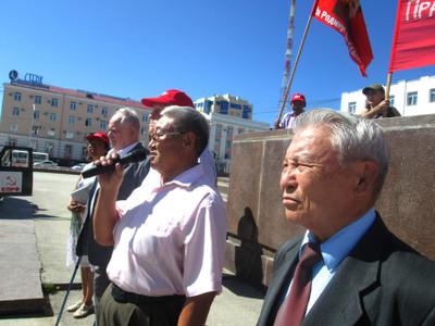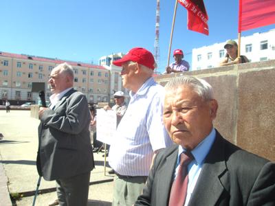 Таковой была «красная нить» митинга трудящихся и общественности г. Якутска, прошедшего 26 июля 2013 года в рамках Всероссийской акции протеста против реформирования Российской Академии наук, в поддержку инициатив КПРФ по отставке Правительства РФ, а также в поддержку законопроекта «О детях войны».