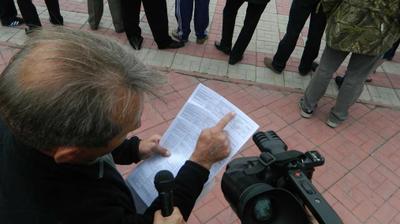 Выступлений не было. Свои требования работники автобазы изложили на принесенных с собой плакатах, которые развернули в сторону офиса компании.