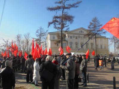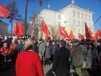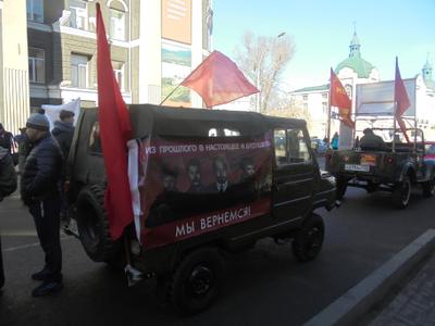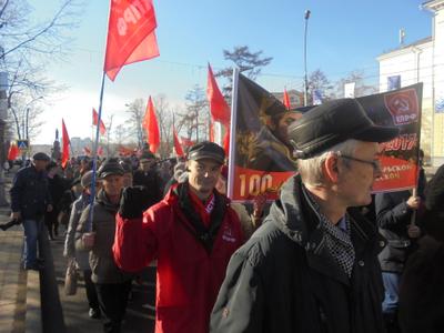7 ноября в Иркутске состоялись митинг и шествие, посвящённые 100-летию Великой Октябрьской социалистической революции. Сбор участников состоялся у мемориала красногвардейцам, павшим в боях за Советскую власть в декабре 1917 г., у «Белого дома», на пересечении улицы К. Маркса и бульвара Гагарина. У памятника состоялся короткий митинг, на котором секретарь горкома КПРФ Г.Н. Калиновский рассказал о событиях 100-летней давности на этом месте, и возложение цветов.