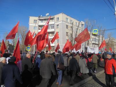 Затем, сформировав колонну, участники мероприятия двинулись по улице Карла Маркса к памятнику В.И. Ленину, где состоялся митинг-концерт. Во главе колонны ехала тачанка с экипажем из красноармейца и матроса «Авроры», в образе которых предстали иркутские коммунисты.