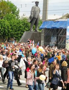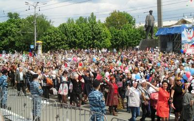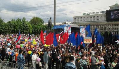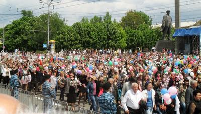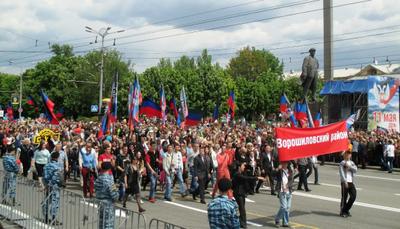 11 мая – настоящий праздник для нас всех. Мы увидели в Донецке грандиозное мирное шествие, в котором приняли участие свыше пятидесяти тысяч человек из всех городов и районов Донецкой Народной Республики. Они несли транспаранты, флаги, цветы, воздушные шары. Студенты торжественно развернули на площади огромный флаг Донецкой Народной Республики.