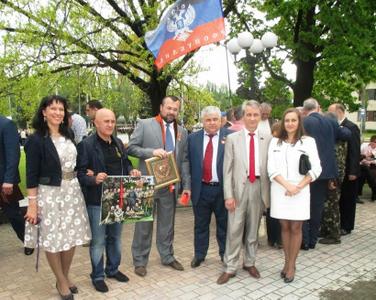Мы поблагодарили главу Министерства иностранных дел ДНР Александра Кофмана за приглашение принять участие в торжественном мероприятии и выразили уверенность, что сегодняшний день стал историческим не только для жителей Республики, но и братских народов республик бывшего СССР. Ему торжественно была вручена памятная медаль КПРФ «В ознаменование 70-летия Великой Победы».