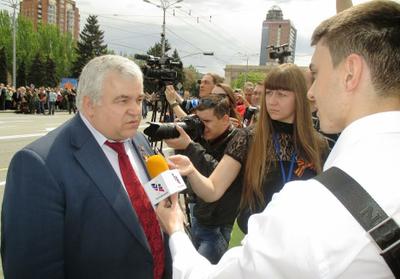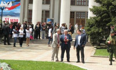 Вот и на этот раз делегаты провели консультации со многими руководителями отраслей республики, дали интервью представителям СМИ. А большинство из двух десятковнагражденных на трибуне медалью Донецкой народной республики за активное участие в организации прошедшего год назад референдума, подходили к нам, чтобы получить поздравления и просто поделиться радостью со старыми надежными друзьями».