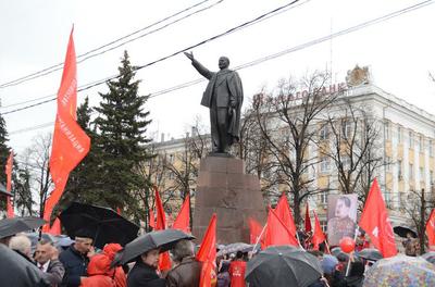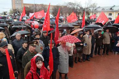 Колонна прошла маршем от монумента на пл. Победы до пл. Ленина, где возле памятника вождю мирового пролетариата состоялся митинг. Его открыл секретарь Рязанского обкома КПРФ, депутат Рязанской городской Думы Д.С. Сидоров. Перед собравшимися выступили: лидер рязанских коммунистов, депутат ГД РФ В.Н Федоткин.; секретарь Московского райкома КПРФ, руководитель фракции КПРФ в Гордуме П.И. Пыленок; подполковник запаса, секретарь первичного отделения КПРФ В.В. Кулик.