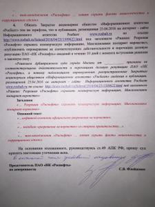 Компания требовала признать не соответствующими действительности и порочащими деловую репутацию сведения, распространенные на интернет-сайте КПРФ, в материале под заголовком «Валерий Рашкин: правительство официально разрешило руководству "Роснефти" воровать», а также сведения, распространенные на интернет-сайте агентства «Росбалт» в публикации под заголовком «Рашкин: разрешая "Роснефти" скрывать коммерческую информацию, Минэкономики поощряет воровство».